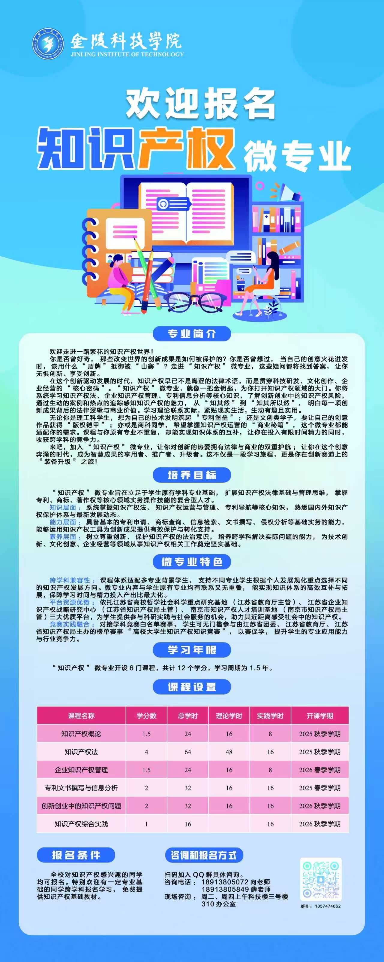 欢迎报名金陵科技学院知识产权微专业